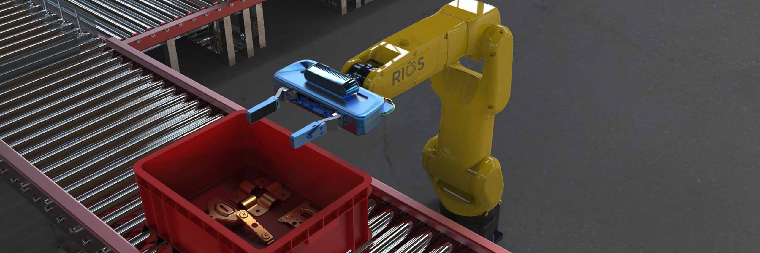 In ecommerce and warehousing, RIOS robots efficiently pick up objects and place them in bins, boxes, and totes. Being able to grasp a broad class of objects makes RIOS ideally suited for these ecommerce applications.
